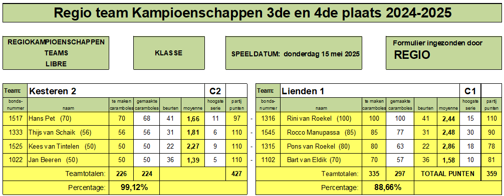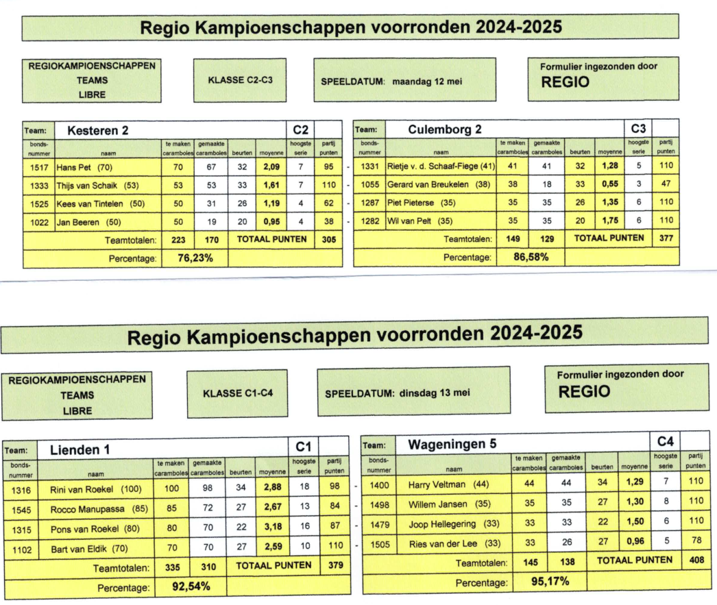 Hieronder de uitslagen van de Regio kampioenschappen voorrondes. Het was een gezellige opkomst van de supporters.